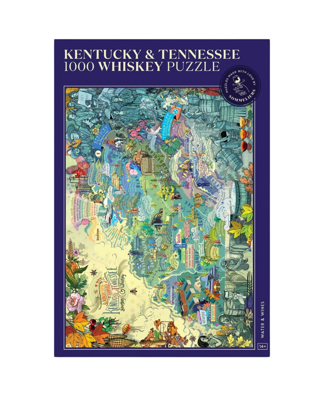 Puzzle s motivem americké whiskey, Kentucky & Tennessee, a její produkce. Součástí balení jsou i recepty s koktejly z těchto ušlechtilých destilátů.