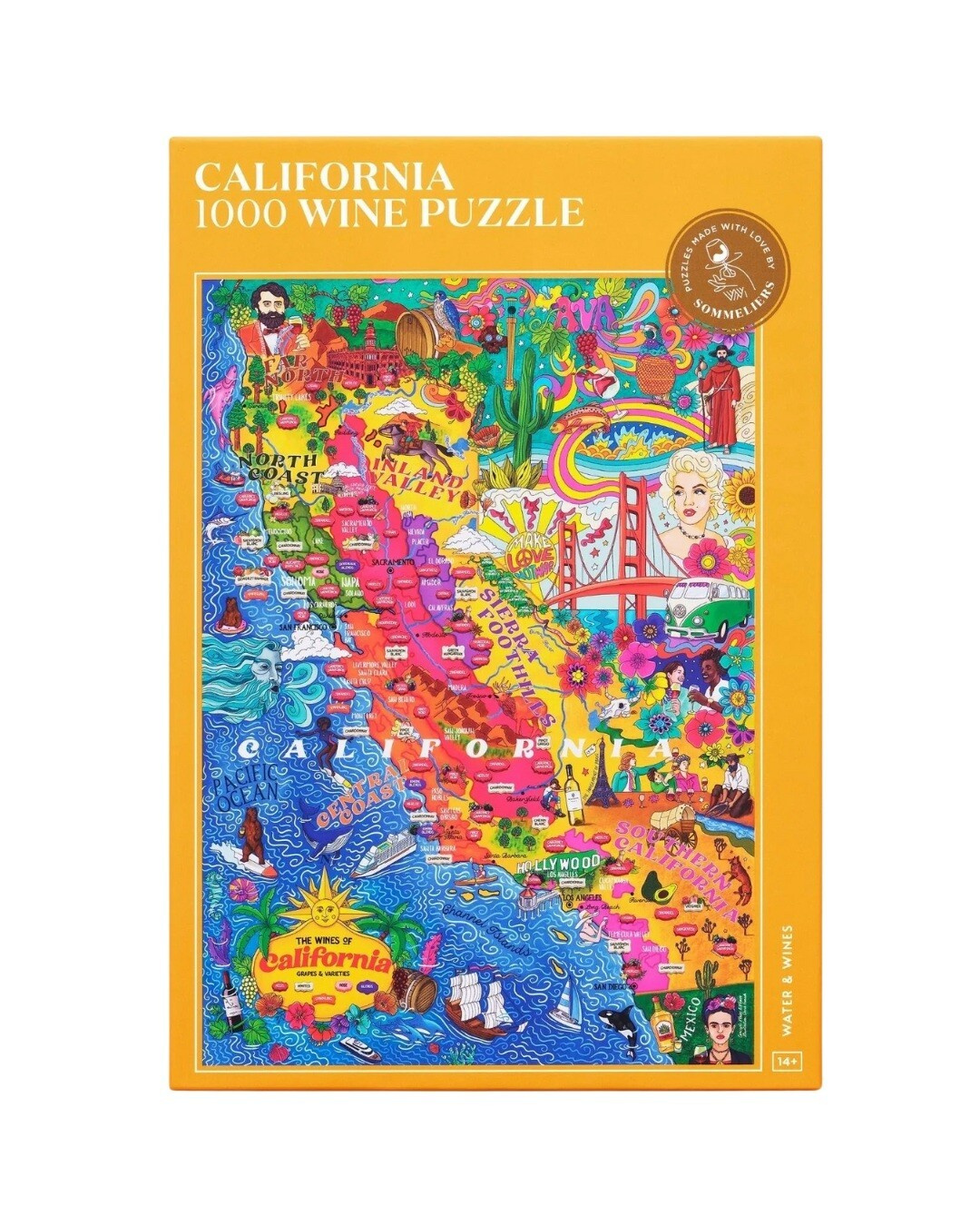 Puzzle s tématikou Kalifornských vinařských oblastí a klíčových odrůd typických právě pro Kalifornii. Krabička obsahuje také profily jednotlivých odrůd, jejich charakteristické vůně a chutě se spoustou tipů na snoubení s jídlem! Ilustrace byly nejprve ručně nakresleny a poté pečlivě zkontrolovány s pomocí nejlepších světových sommeliérů.
