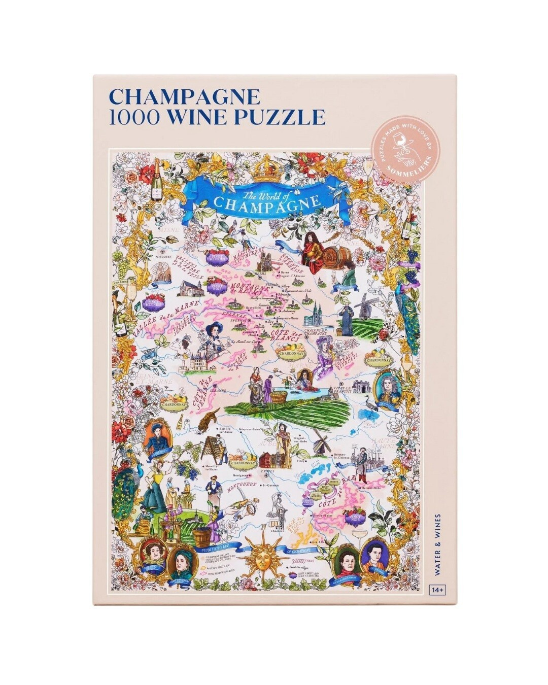 Puzzle s tématikou vinařské oblasti Champagne a klíčových odrůd typických právě pro tuto oblast. Krabička obsahuje také profily jednotlivých odrůd, jejich charakteristické vůně a chutě se spoustou tipů na snoubení s jídlem! Ilustrace byly nejprve ručně nakresleny a poté pečlivě zkontrolovány s pomocí nejlepších světových sommeliérů.